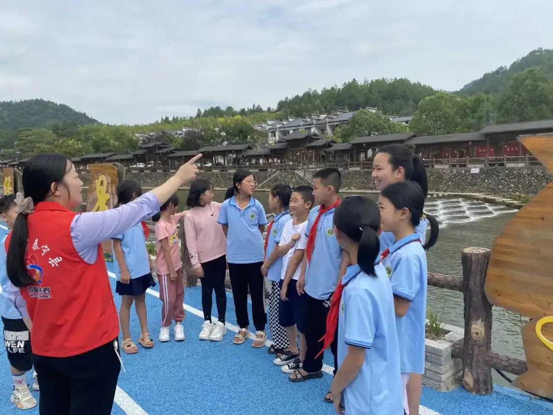 巾幗志愿服務(wù)隊(duì)隊(duì)員為學(xué)生講“鯉魚(yú)的故事” 沿著鯉魚(yú)溪前行,龍鱗壩水花飛濺,觀水長(zhǎng)廊倒映著白墻灰瓦。村口“龍門(mén)里”示范基地內(nèi),正值暑期的學(xué)生們體驗(yàn)插秧農(nóng)事,聽(tīng)研學(xué)導(dǎo)師講解土地翻耕、育秧收割的農(nóng)耕知識(shí),觸摸最真實(shí)的鄉(xiāng)土。 依托豐富的旅游資源與非遺項(xiàng)目,崇際村探索出“旅游+”融合發(fā)展路徑,帶動(dòng)特色農(nóng)業(yè)、研學(xué)寫(xiě)生產(chǎn)業(yè)共同發(fā)展,打造2000畝黃豆種植示范片,3600畝生態(tài)巖茶產(chǎn)業(yè)園。 從人居環(huán)境整治到文明鄉(xiāng)風(fēng)培育,從文旅產(chǎn)業(yè)崛起到村民增收致富,推窗見(jiàn)綠的詩(shī)意與守望相助的溫度交織共生。這些看得見(jiàn)、摸得著、感受得到的文明實(shí)踐,共同繪就了一幅旅游村的“富春山居圖”。 |