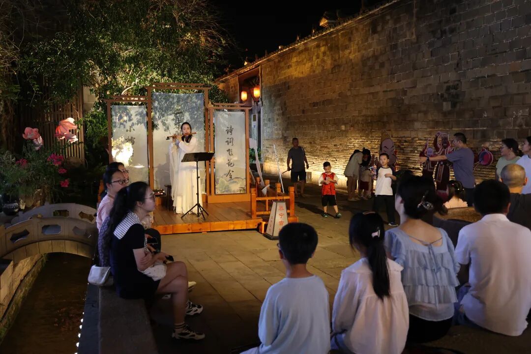 “站在天井旁,看著層層遞進的廳堂,好像能想象到幾百年前這里的生活場景。”游客感嘆,古建筑不僅是木頭和磚石的組合,更是一本立體的歷史教科書,讓孩子直觀感受到傳統(tǒng)工匠的智慧與古典美學的韻味。 隨著夜幕降臨,泰寧古城的文化韻味更加濃厚。